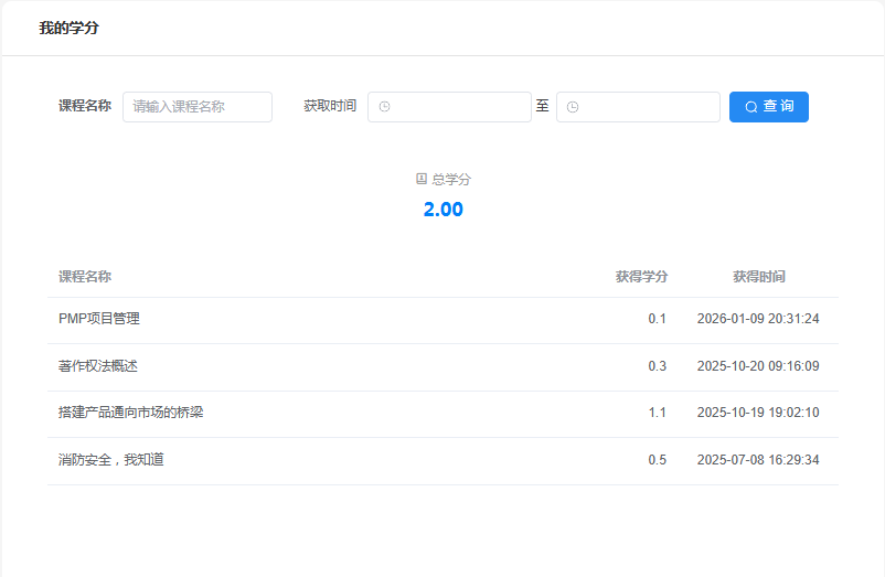 支持学分报表导出、学分数据分析、学分趋势分析等功能,帮助管理者全面掌握学分情况,优化培训策略。学分查询数据可追溯,满足审计要求,让培训管理更规范。