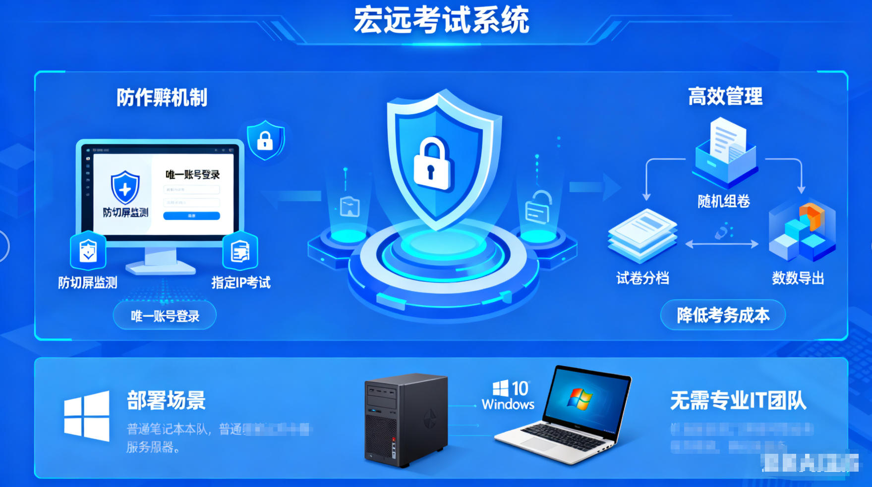 无需为冗余功能支付高昂费用,也不必担忧低价产品的安全与售后隐患,宏远考试系统以万元内的高性价比,实现了功能适配、稳定可靠、安全合规的三重保障,成为中小机构选购考试系统的优选方案。