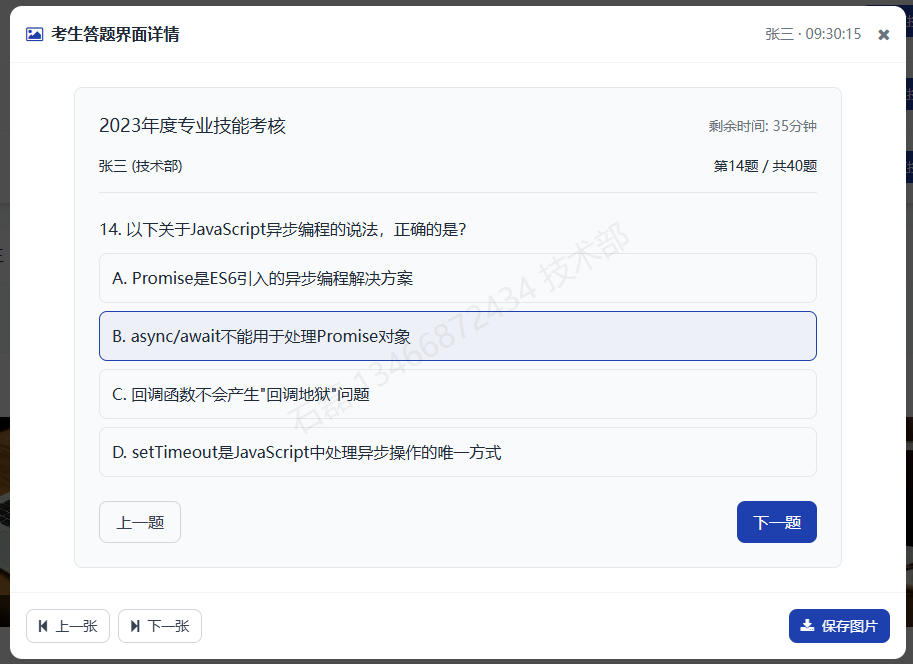 监控列表还支持按学员姓名、考试科目、截屏时间等维度进行筛选和检索,管理员能快速定位特定学员的考试情况。如果发现某学员的截屏画面中存在疑似作弊的痕迹,如出现与考试无关的窗口、他人协助答题等情况,可立即标记并留存证据,为后续的作弊判定提供有力支持。