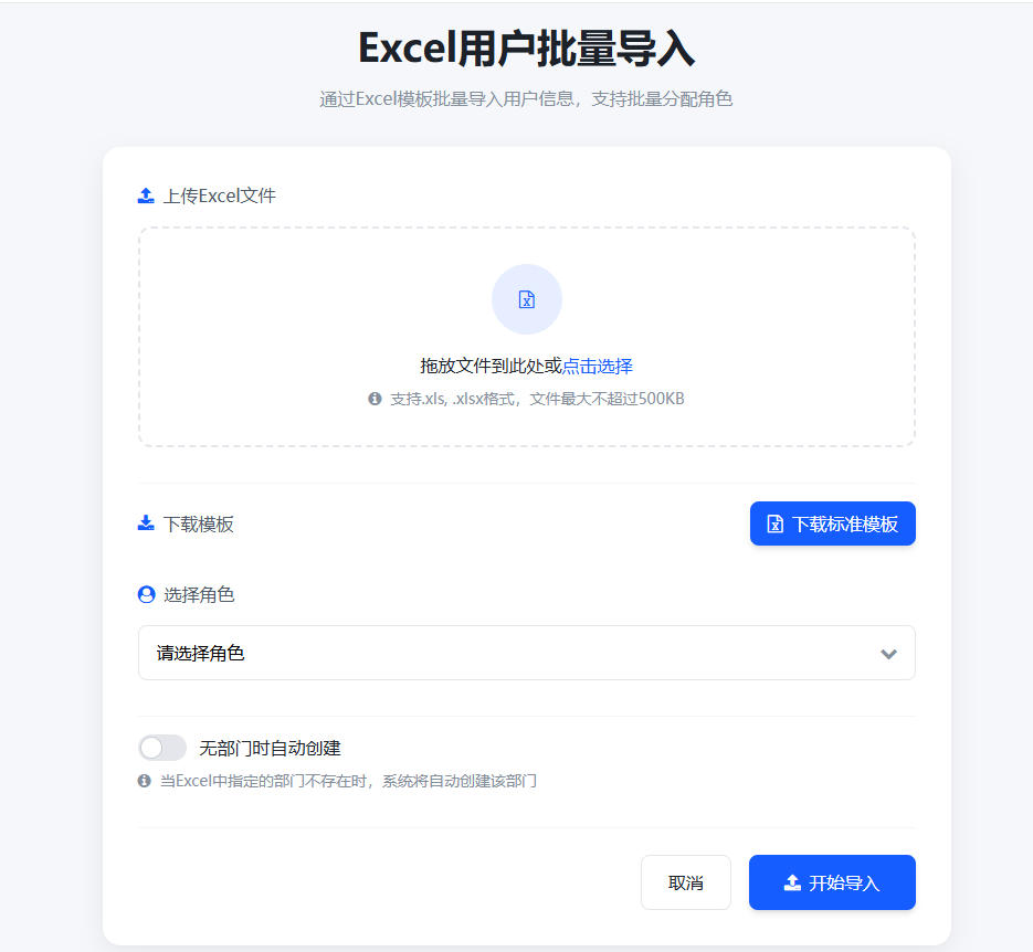 若Excel表中的部门或岗位在系统内尚未存在(如企业新增“研发中心人工智能组”“市场部新媒体岗位”),系统会自动识别并创建对应的部门与岗位,无需用户手动进入“组织架构管理”模块单独操作;