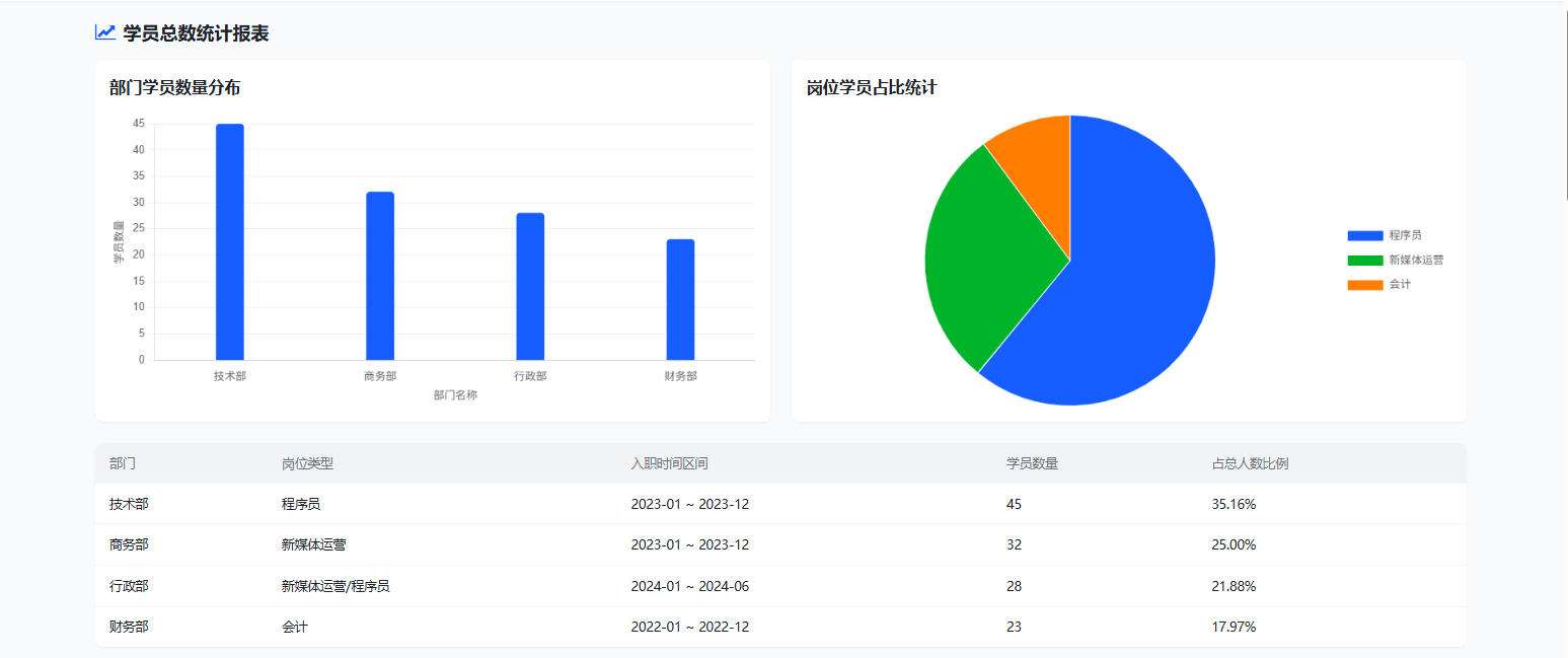 更可通过数据趋势分析,预判培训需求变化,提前规划培训计划,让企业培训更具前瞻性与针对性,真正实现“以数据驱动培训优化,以培训赋能人才发展”,助力企业构建高素质人才队伍,提升核心竞争力。