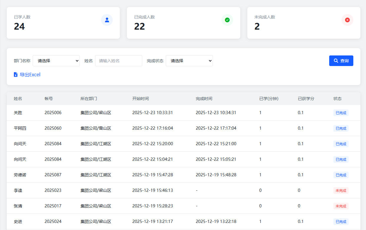 系统支持多终端适配,数据看板可在PC端、平板、手机等设备上同步显示,管理者外出时也能随时查看培训动态,及时处理突发问题。此外,看板支持数据预警设置,当培训完成率低于预设阈值、考试通过率异常等情况出现时,系统会自动触发提醒,确保管理者第一时间掌握异常信息并采取应对措施。这种实时化、可视化的管理方式,让培训决策从“经验判断”转向“数据驱动”,大幅提升决策的精准度与响应效率。
